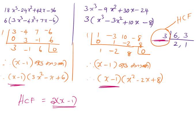மீ.பொ.வ காண்க p2 + 8p + 12, p2 + 2p – 24 மற்றும் p2 + 15p + 54 (Find the HCF of )