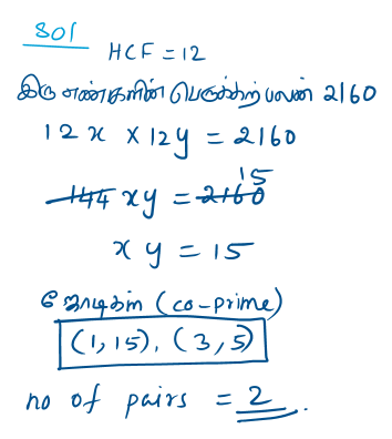 இரு எண்களின் பெருக்கற்பலன் 2160 மற்றும் அவற்றின் மீ.பொ.வ 12. இதனை எத்தனை ஜோடிகள் பூர்த்தி செய்யும்.