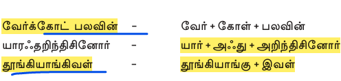 3) வேர்கோட்பலவின்- வேர் + கோள் + பலவின்Correct