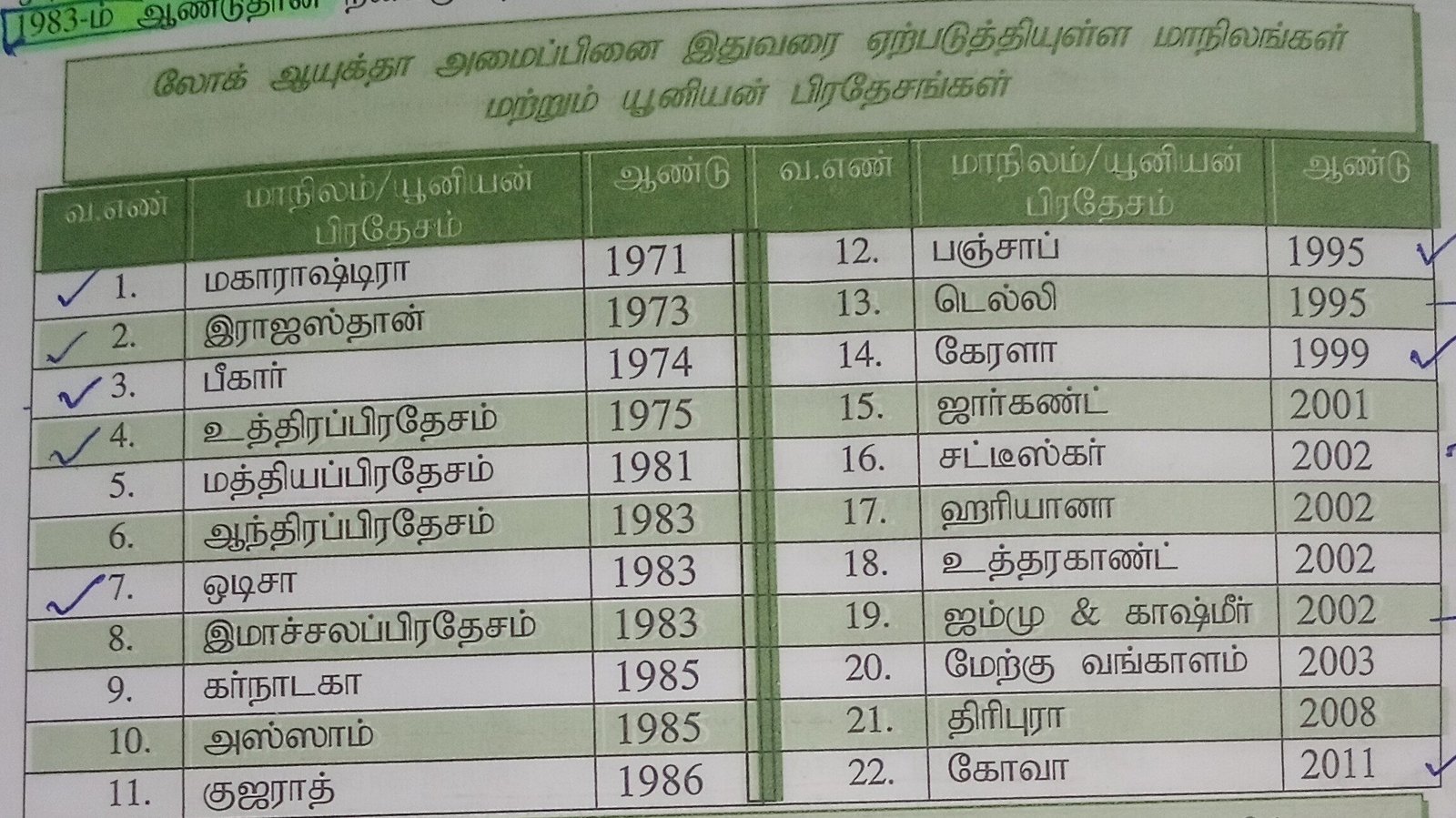லோக்ஆயுக்தா எந்த பகுதியில் இல்லை?Correct