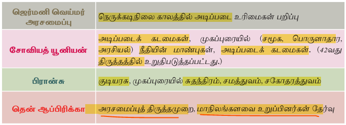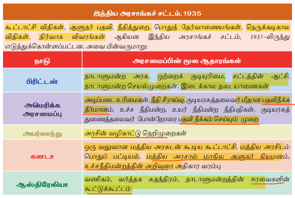 ஒரு வலுவான மத்திய அரசுடன் கூடிய கூட்டாட்சி, மத்திய அரசிடம் பொதுப் பட்டியல், மத்திய அரசால் மாநில ஆளுநர் நியமனம், உச்சநீதிமன்றத்தின் அறிவுரை அதிகார வரம்பு போன்றவை எந்த நாட்டிடமிருந்து பெறப்பட்டவை?
