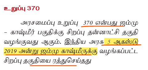காஷ்மீருக்கு வழங்கப்பட்ட சிறப்பு அந்தஸ்து (சரத்து 370) ரத்து செய்யப்பட்ட நாள்