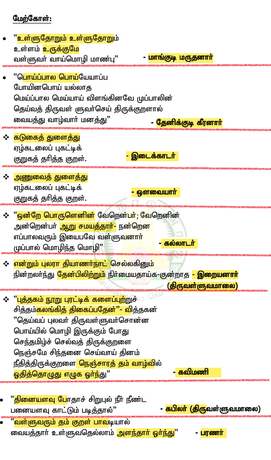 “பொய்ப்பால பொய்யேயாய்ப் போயினபொய் யல்லாத மெய்ப்பால மெய்யாய் விளங்கினவே”-என்று திருக்குறளைப் பற்றி பாடியவர்